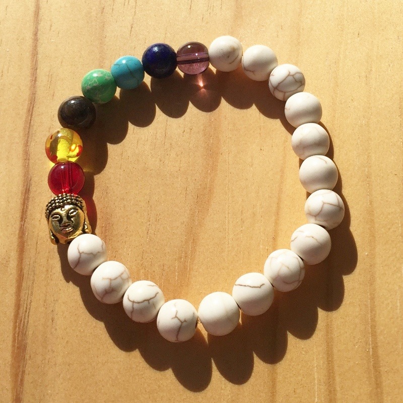 Association Idéale des Pierres : Créé avec la meilleure association possible en lithothérapie pour harmoniser les 7 chakras, ce bracelet intègre des pierres comme la cornaline, l’œil de tigre, la howlite verte, le jade jaune, le lapis lazuli, l’améthyste et la turquoise.